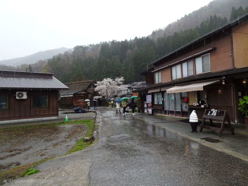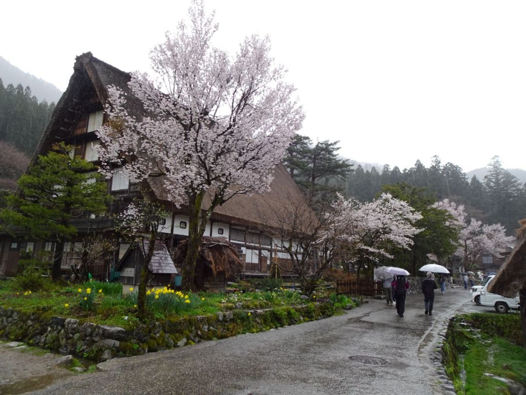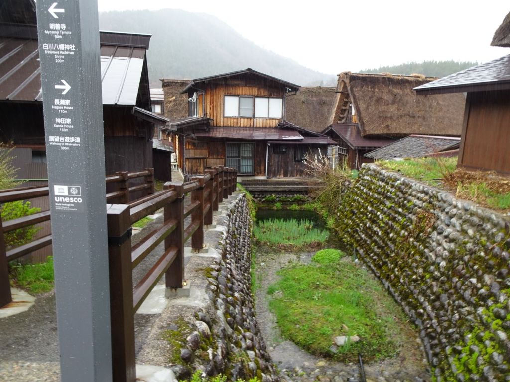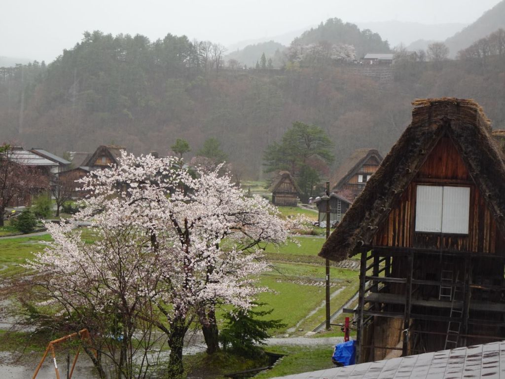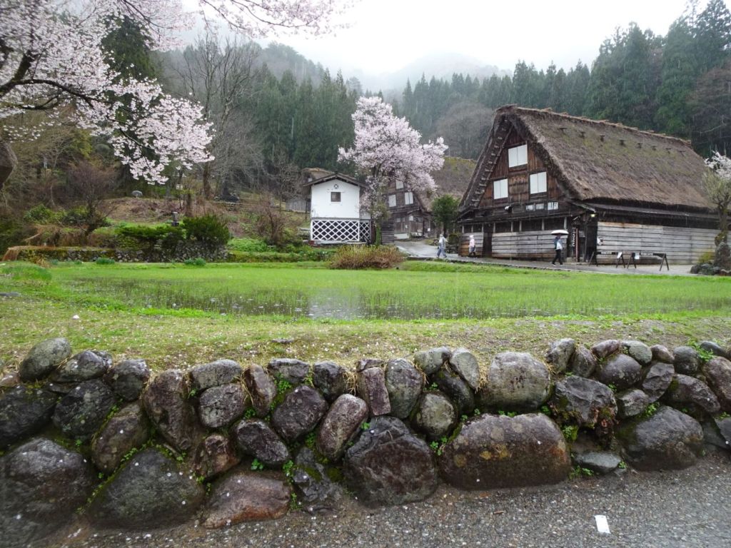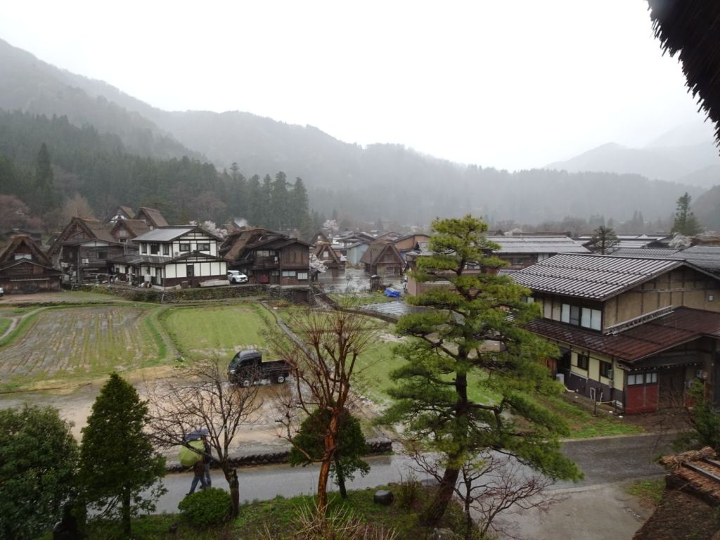 We had planned our first full day in Kanazawa to visit an ancient village in the mountains called Shirakawa-go and a tour of the the beautiful park in Kanazawa. We met our guide and bus at the train station for the hour drive to Shirakawa-go. It was a very rainy day, but that does not stop anything in Japan.