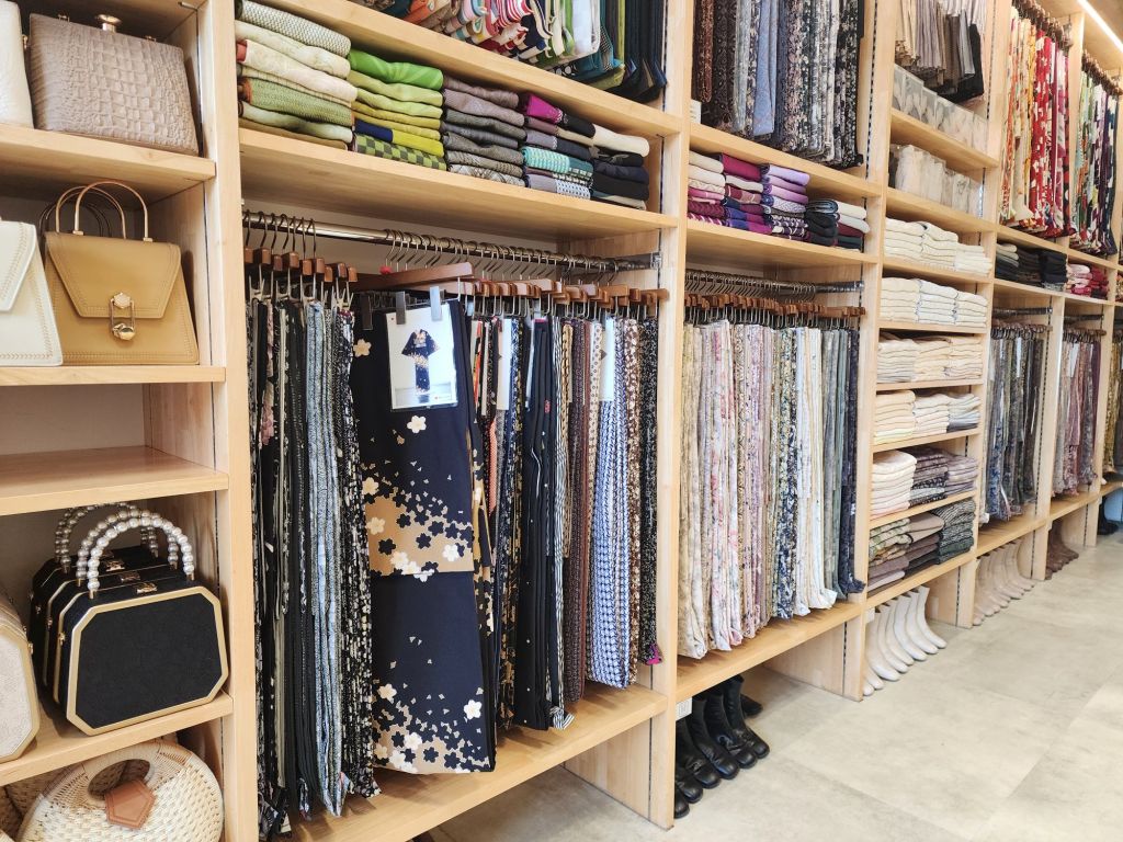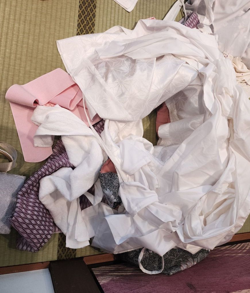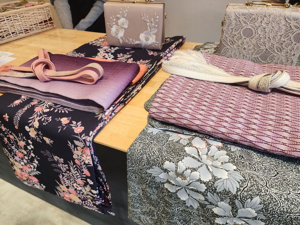 Before and After! choosing our kimono and obi. An attended helped choose coordinating colors for the obi, tie, and an accent scarf. We choose a bag and shoes and proceeded to the dressing department. no pictures allowed there