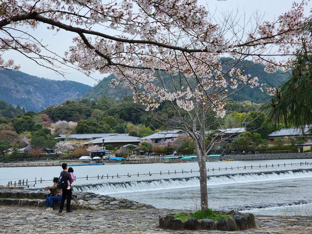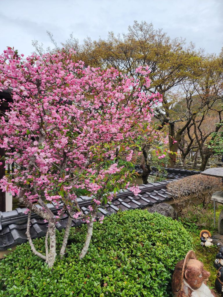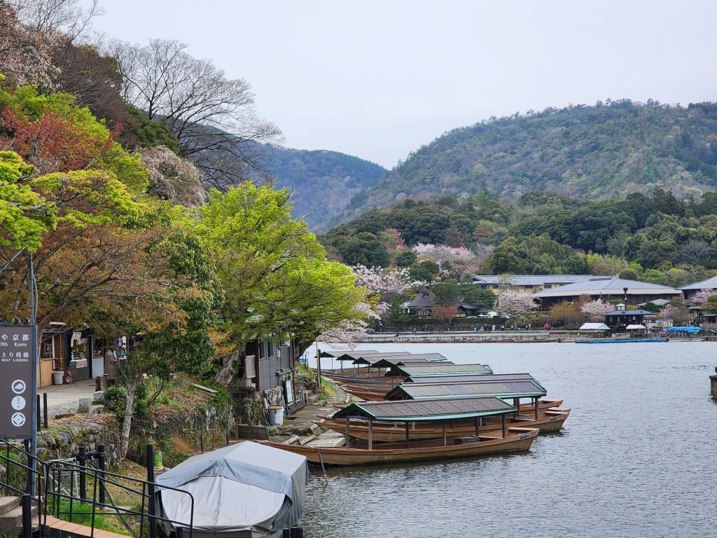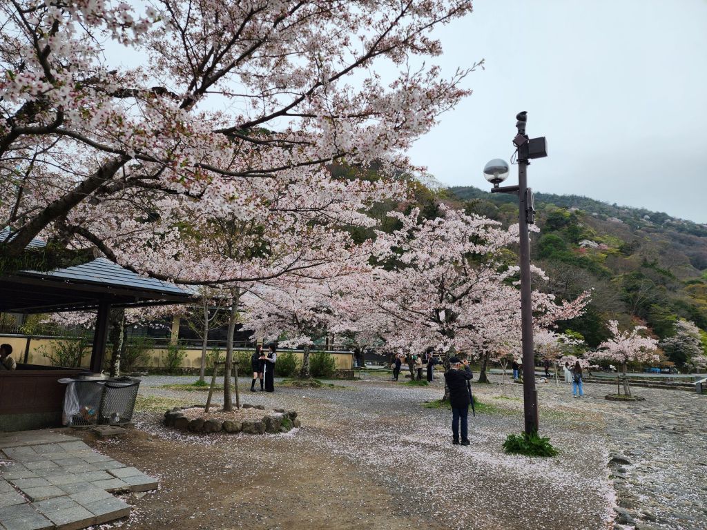 We had planned a boat ride down the Hozugawa River but they is rainy and the river ride has been cancelled 4 days in a row because of the high river. Instead we took the train up to Arashiyama area to see the bamboo forest and the kimono forest. The Sakura trees were beautiful!, and this variety was more pink.