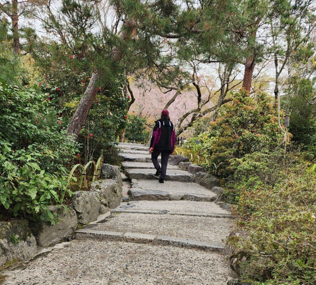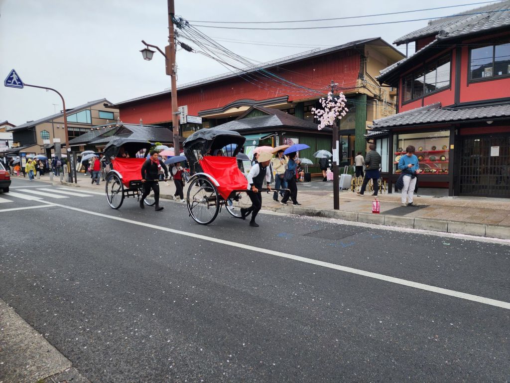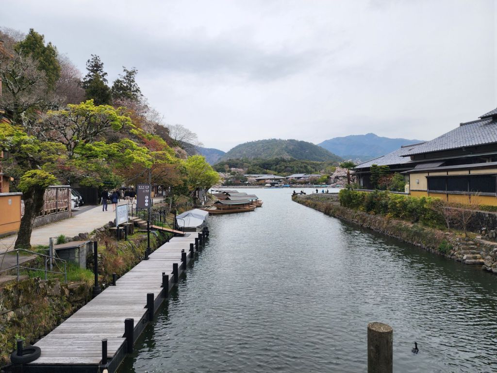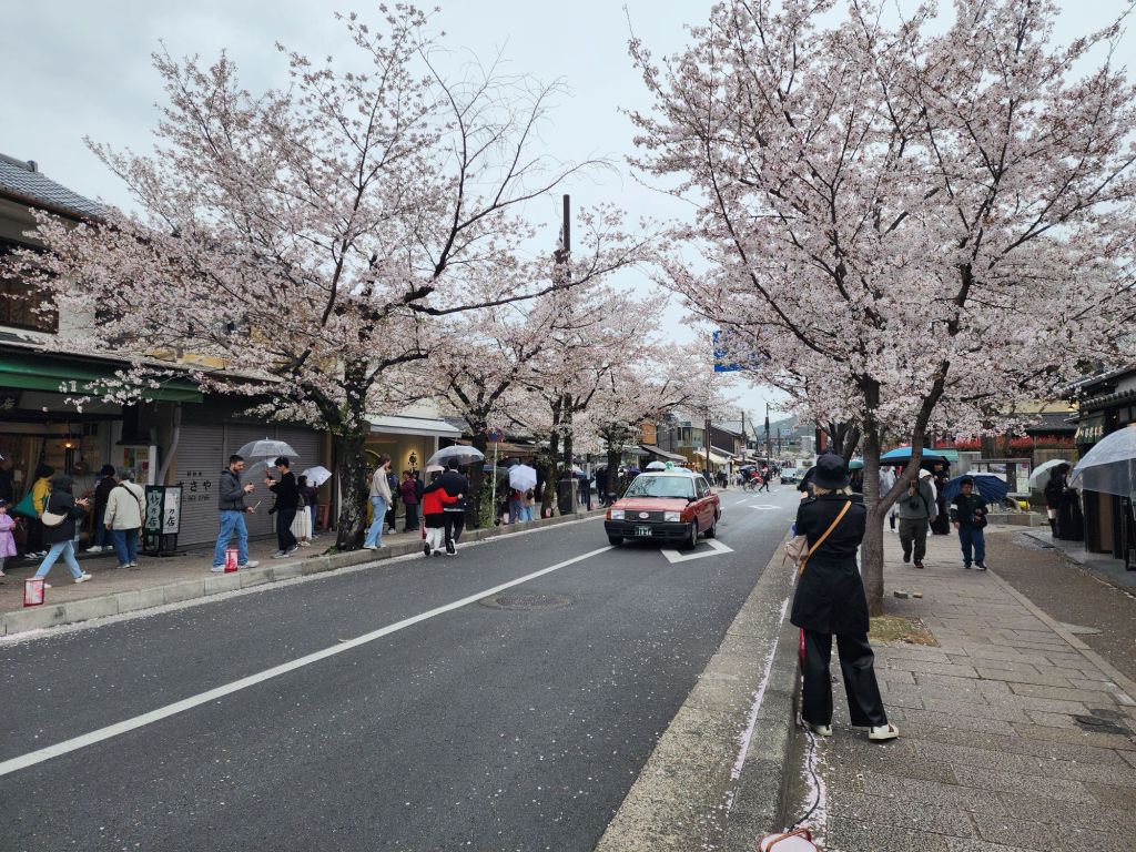 We had planned a boat ride down the Hozugawa River but they is rainy and the river ride has been cancelled 4 days in a row because of the high river. Instead we took the train up to Arashiyama area to see the bamboo forest and the kimono forest. The Sakura trees were beautiful!, and this variety was more pink.