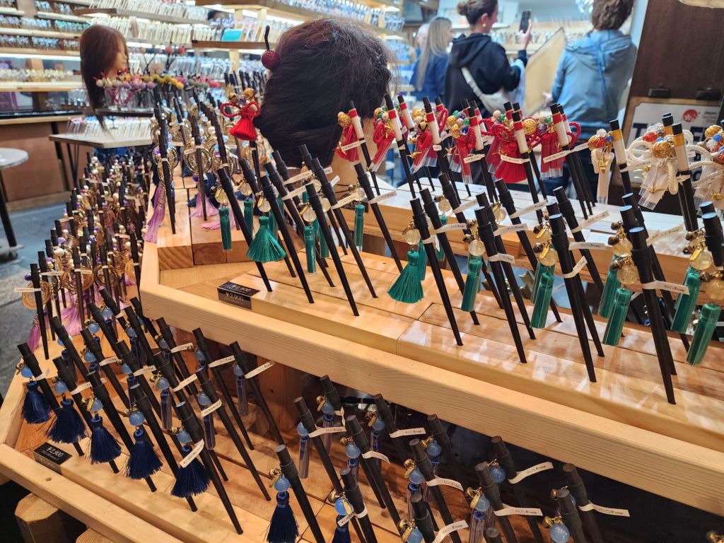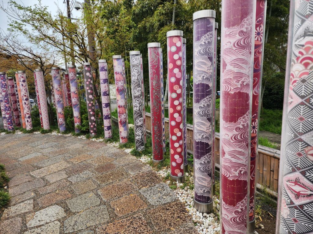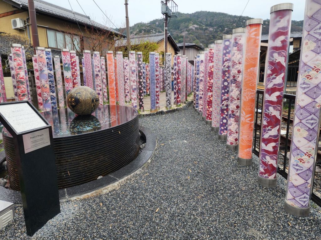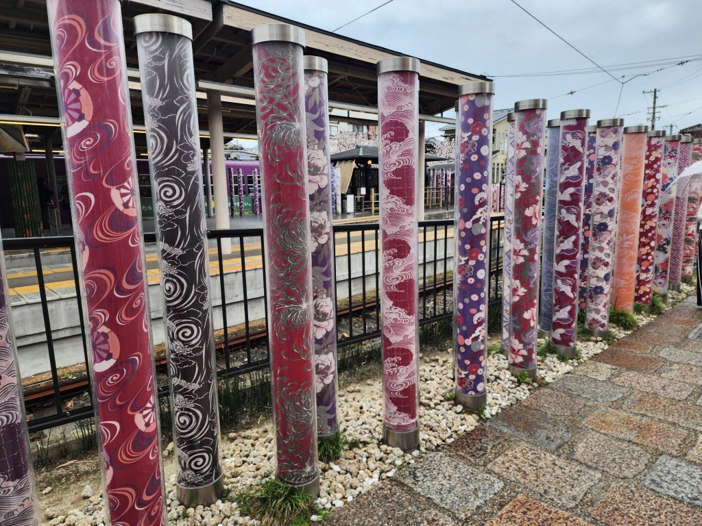 The kimono forest is actually poles covered with beautiful kimono fabric surrounding the train station there!