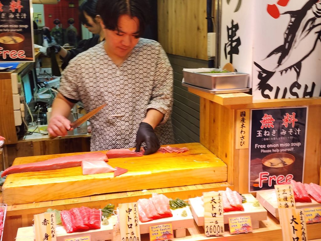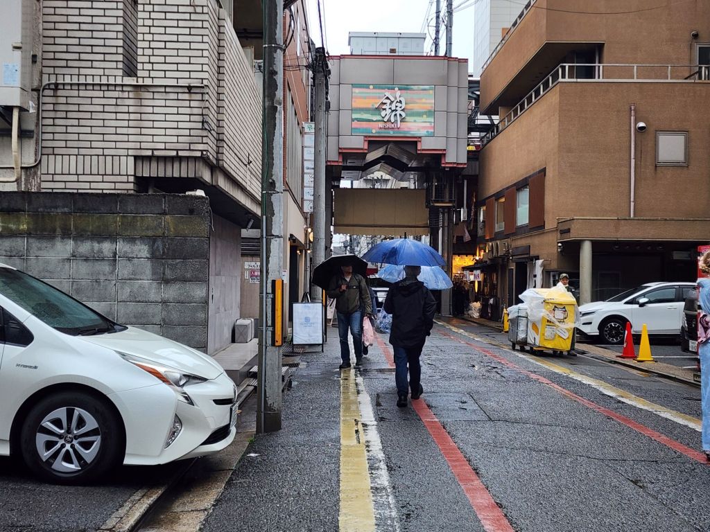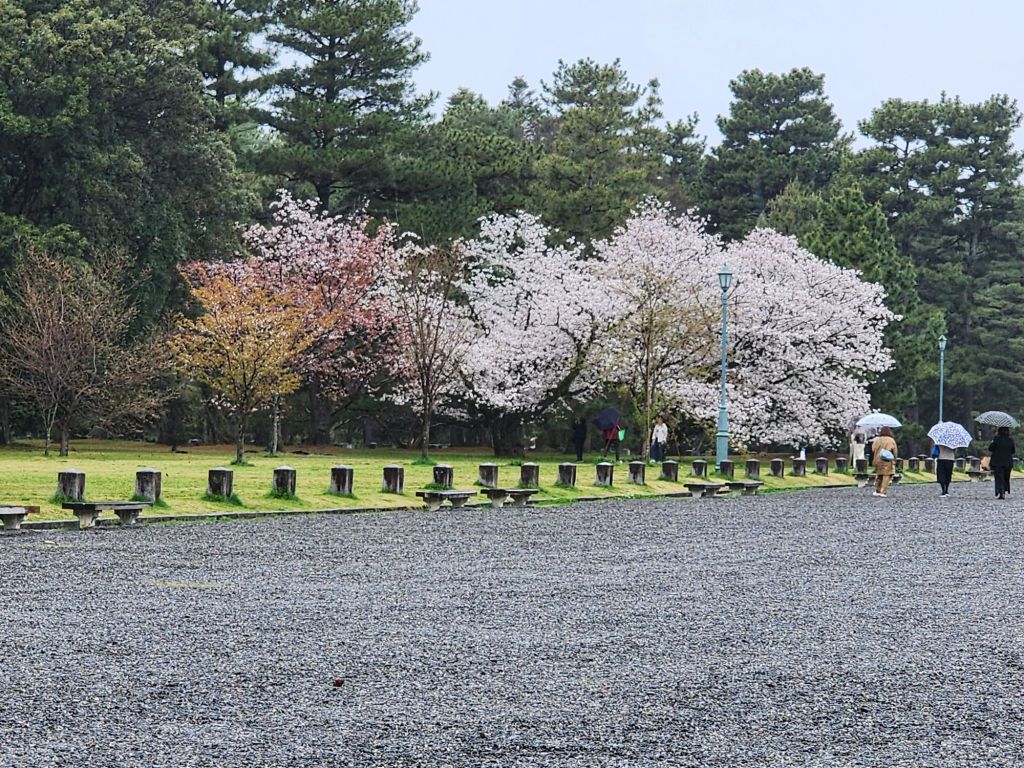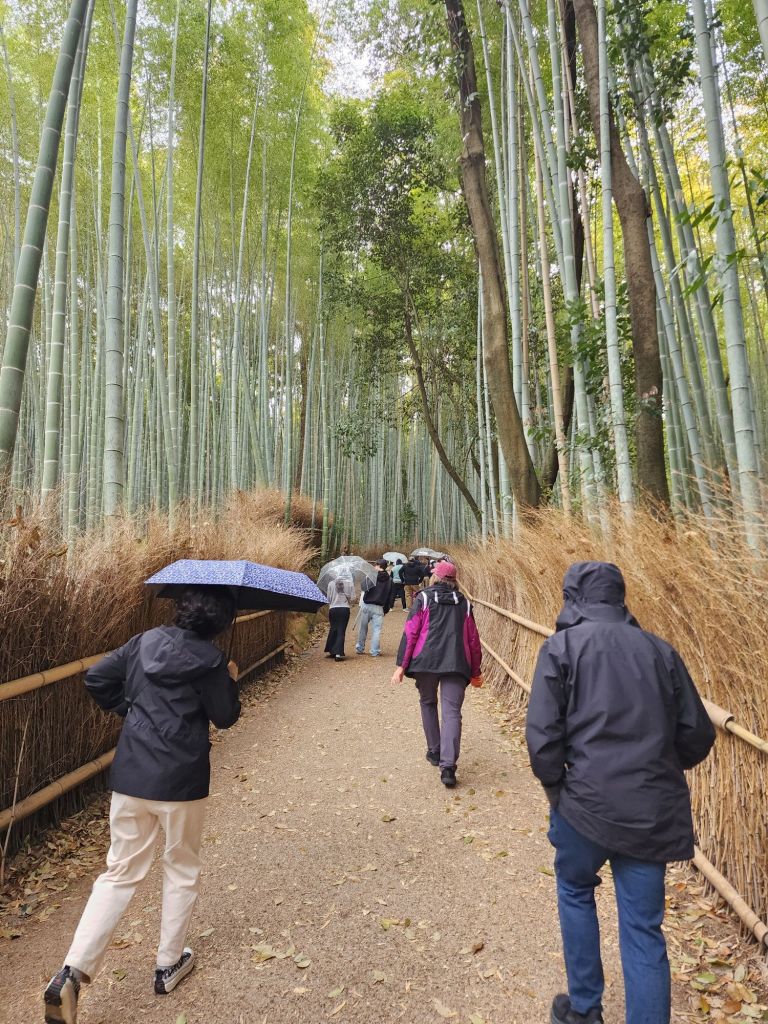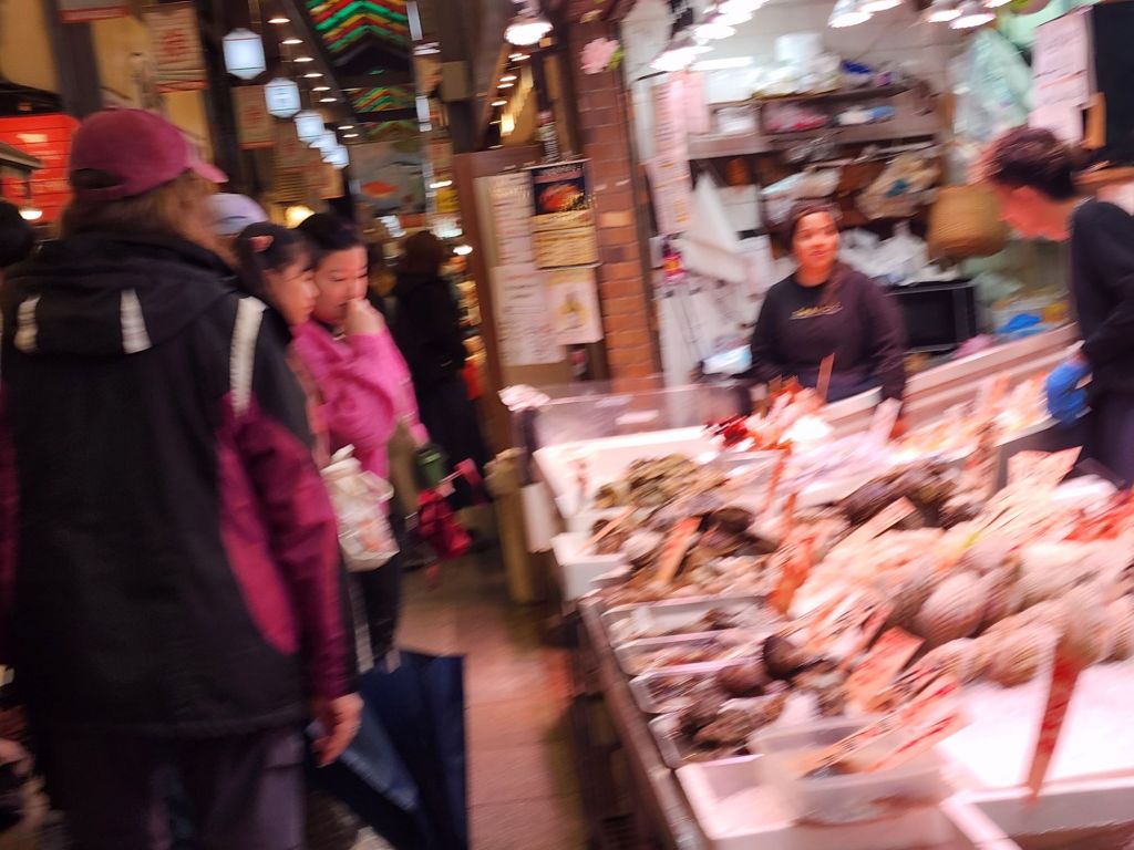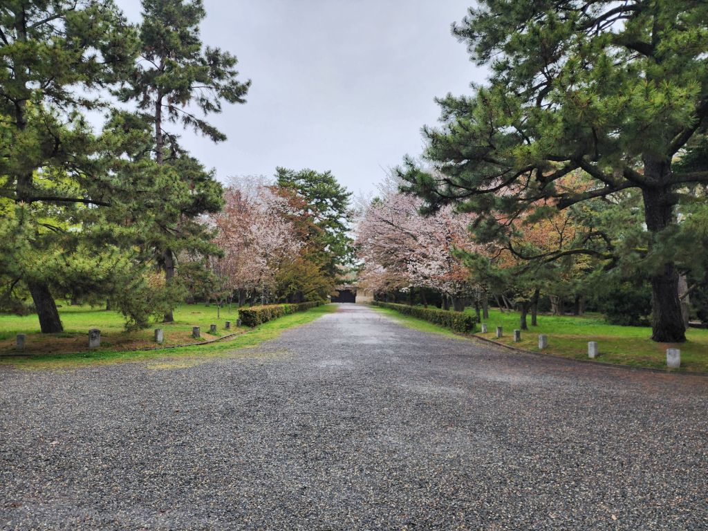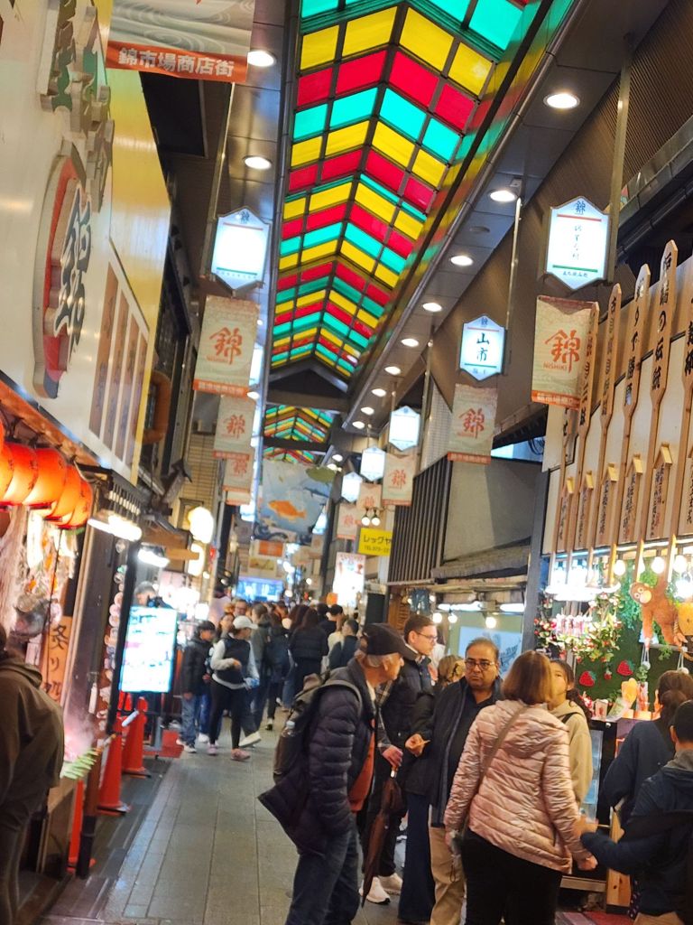 On our way home, by bus, we stopped at the Kyoto National Garden and the ancient Imperial palace. It was closed, but we did walk along the grand avenue thru the park, and down to the Nishiki Market for a snack.