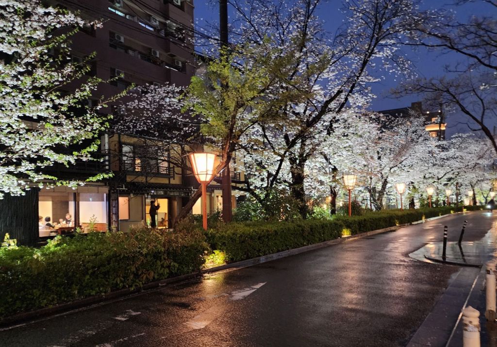 Our walk home along the street with Sakura trees lit from below was magical!
