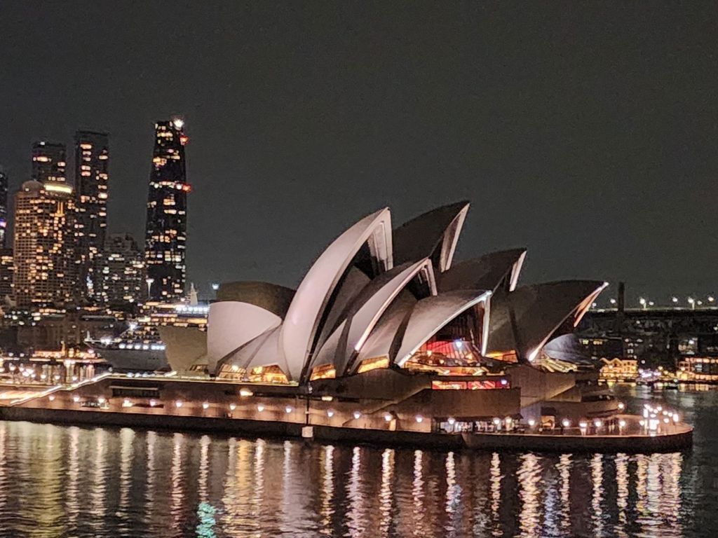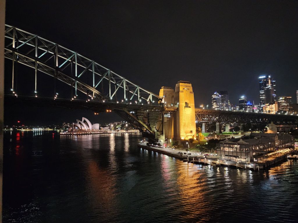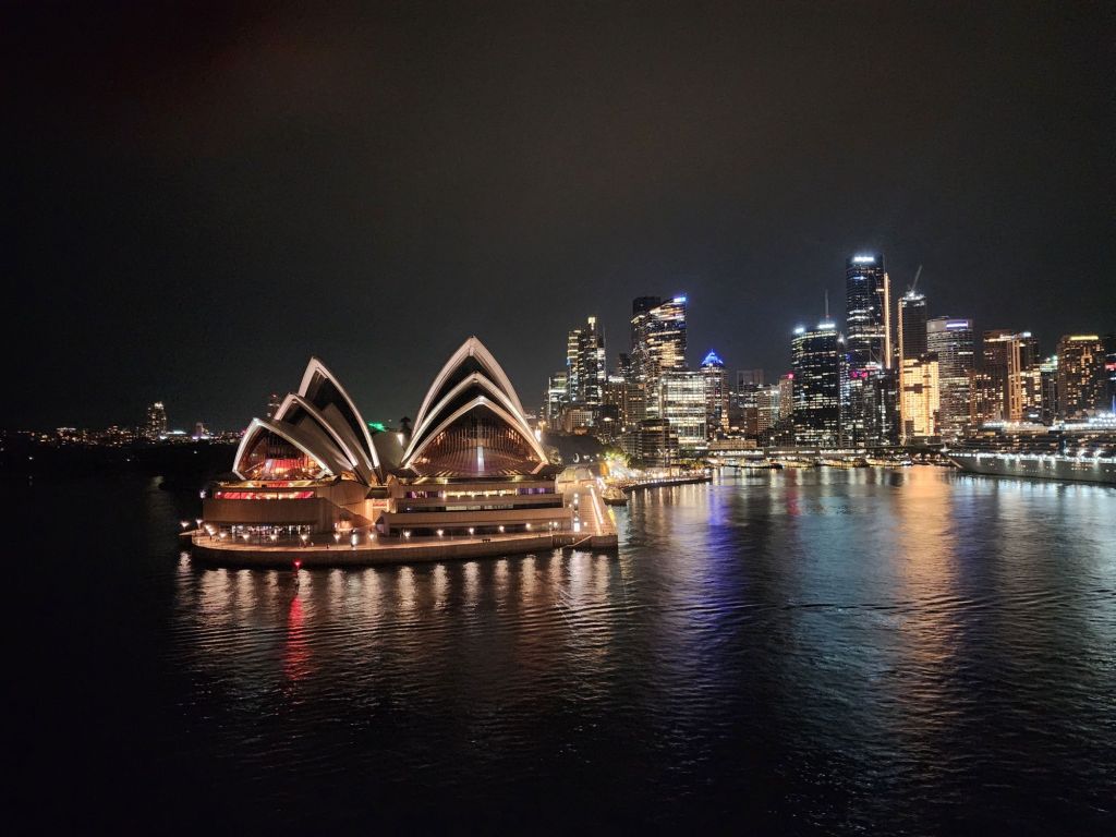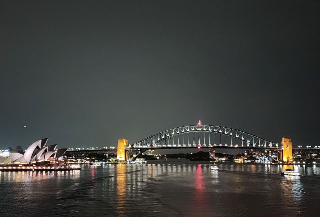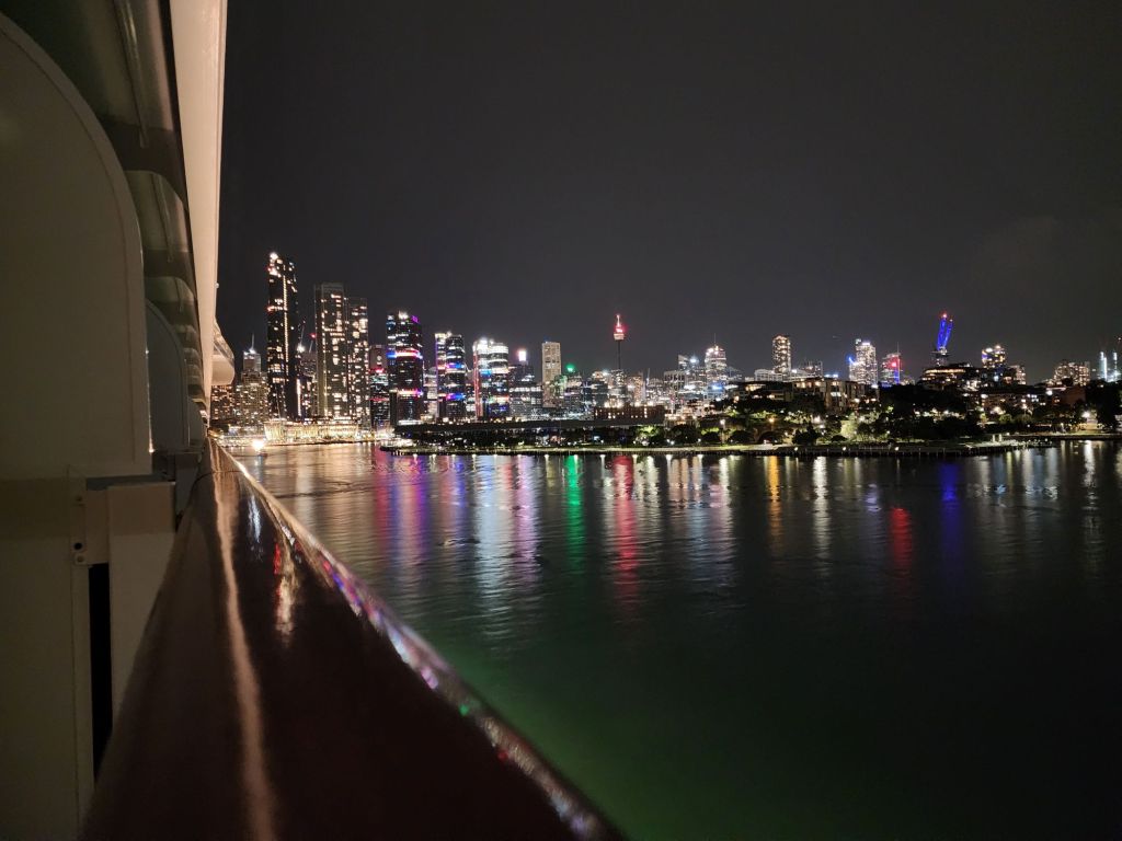 We sail away at 11 PM, so the view under the iconic Sydney Harbour Bridge and by the Opera House is breathtaking