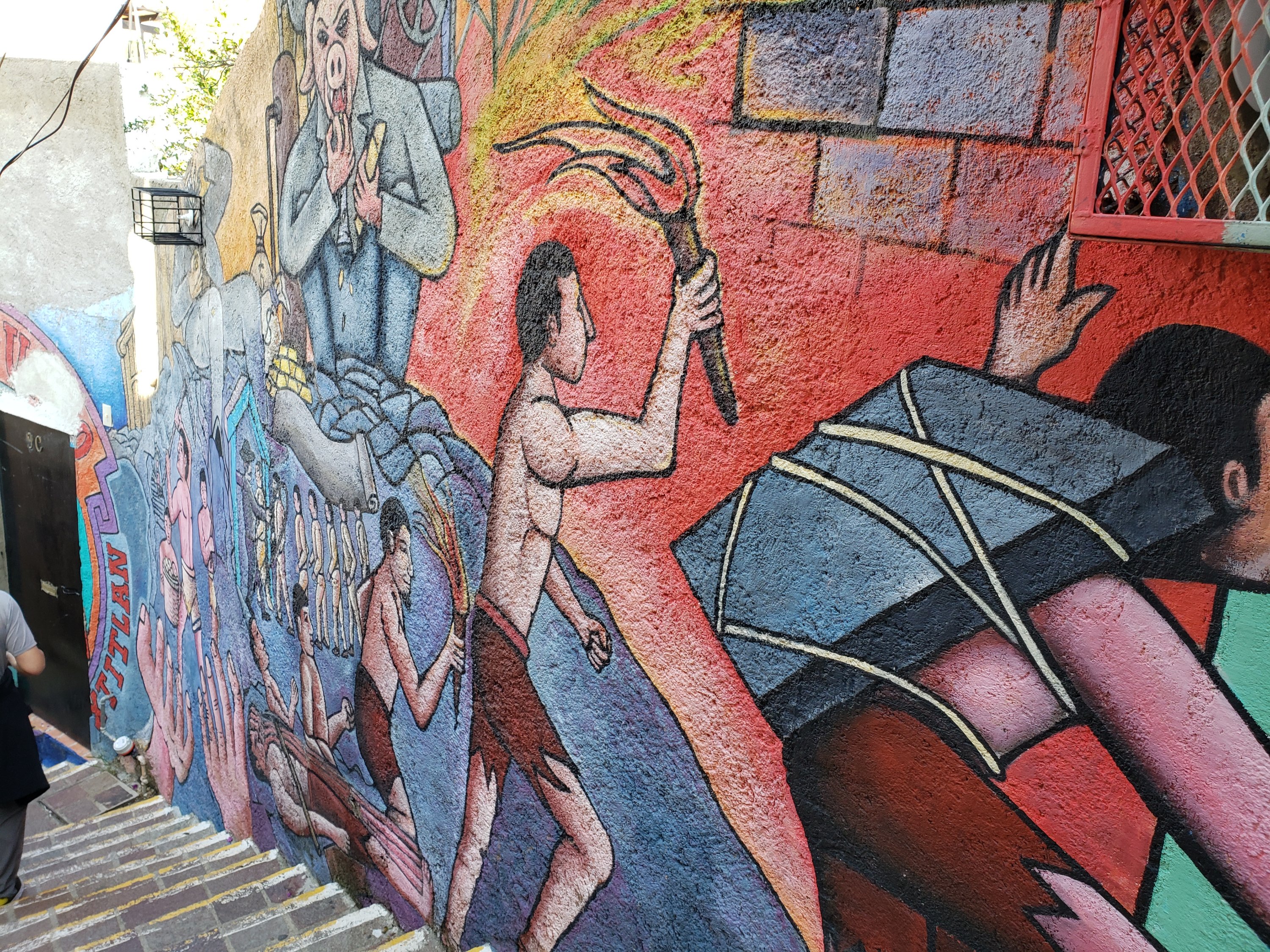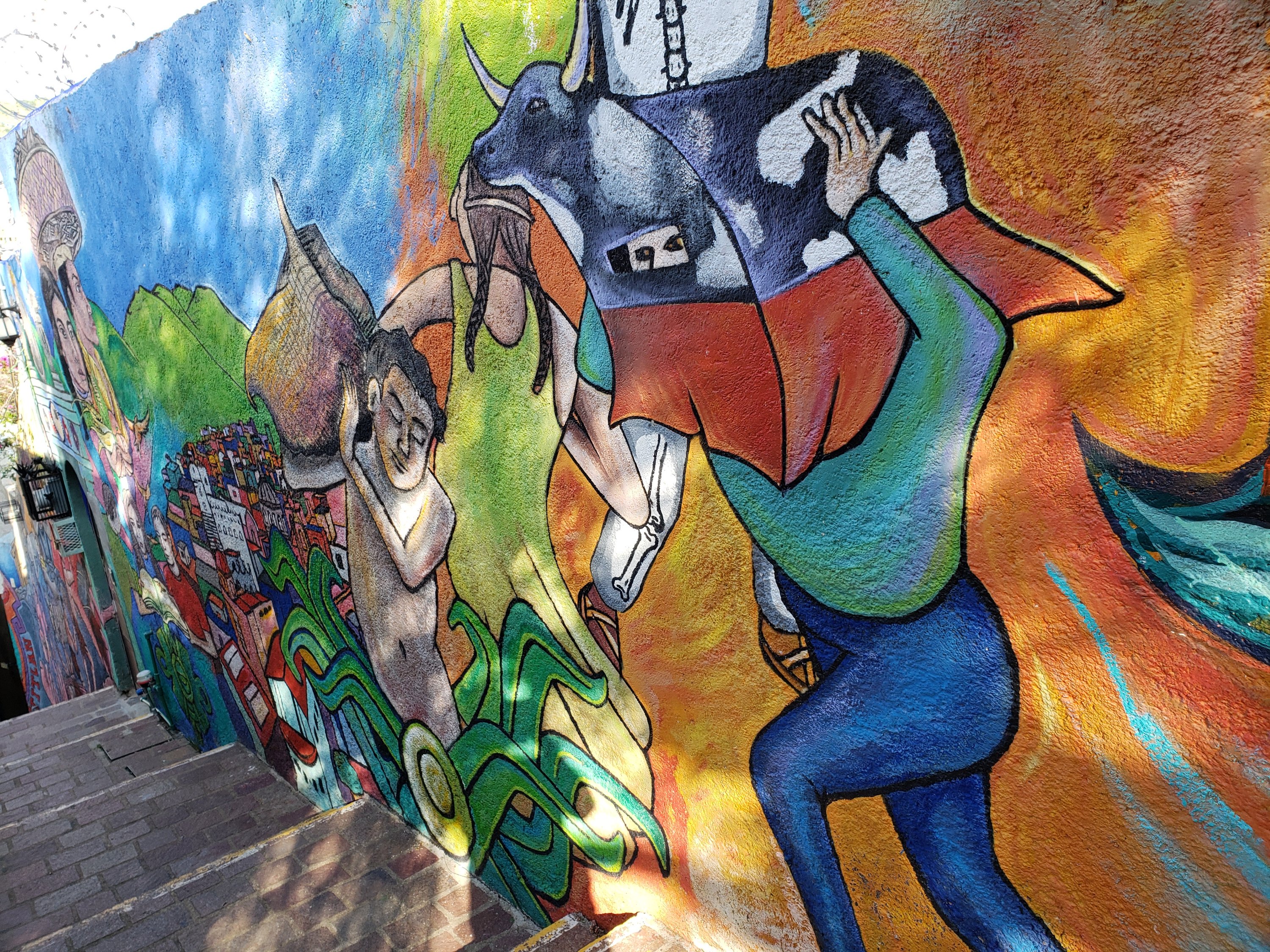 After coffee and a pastry relaxing in Plaza San Fernando, we visited the Mercado Hidalgo and had lunch near by at a taqueria. Then we visited the local history museum, Museo Alhondiga de Granaditas, where we learned about the early civilizations of the area and the revolution and fight for Mexican independence