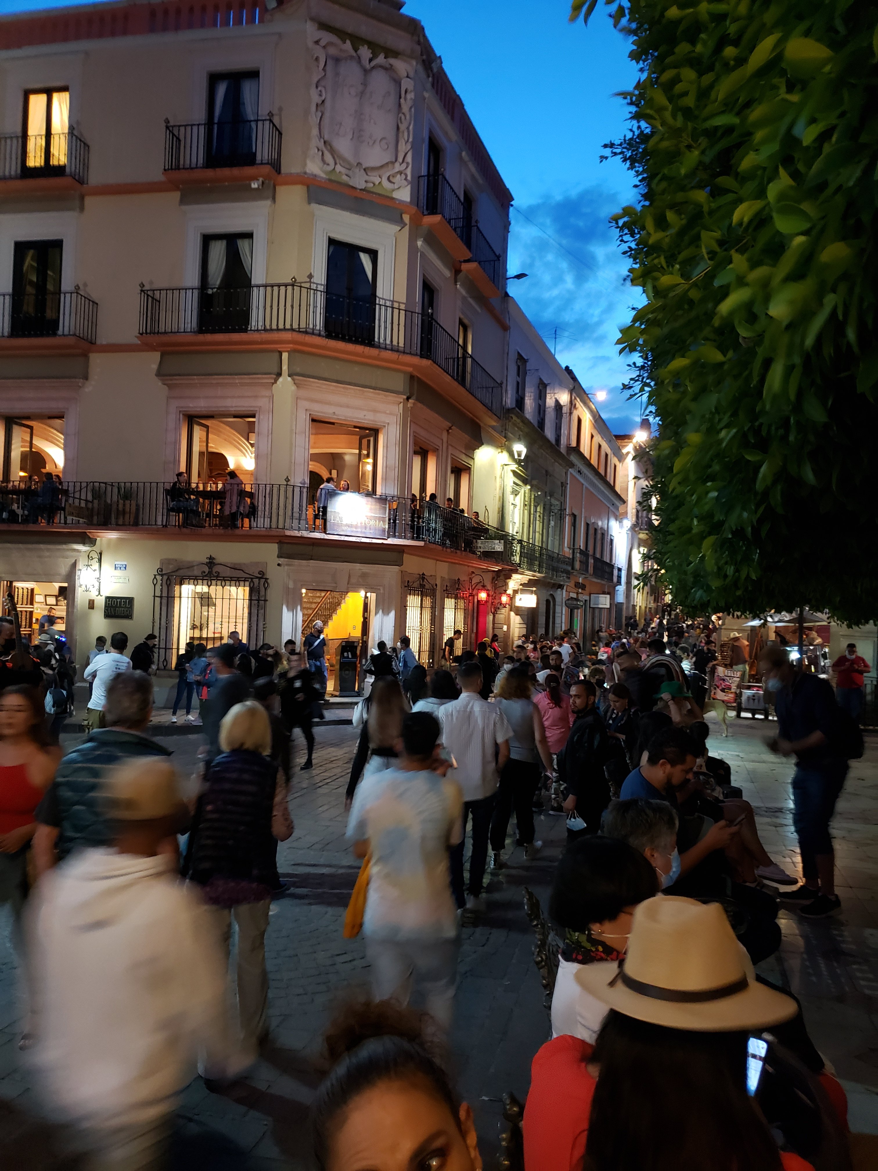We had a reservation for dinner with a great view of the jardin, at la Trattoria and enjoyed a stroll to a lovely plaza Baratillo, around the Jardin and back passed the street food markets