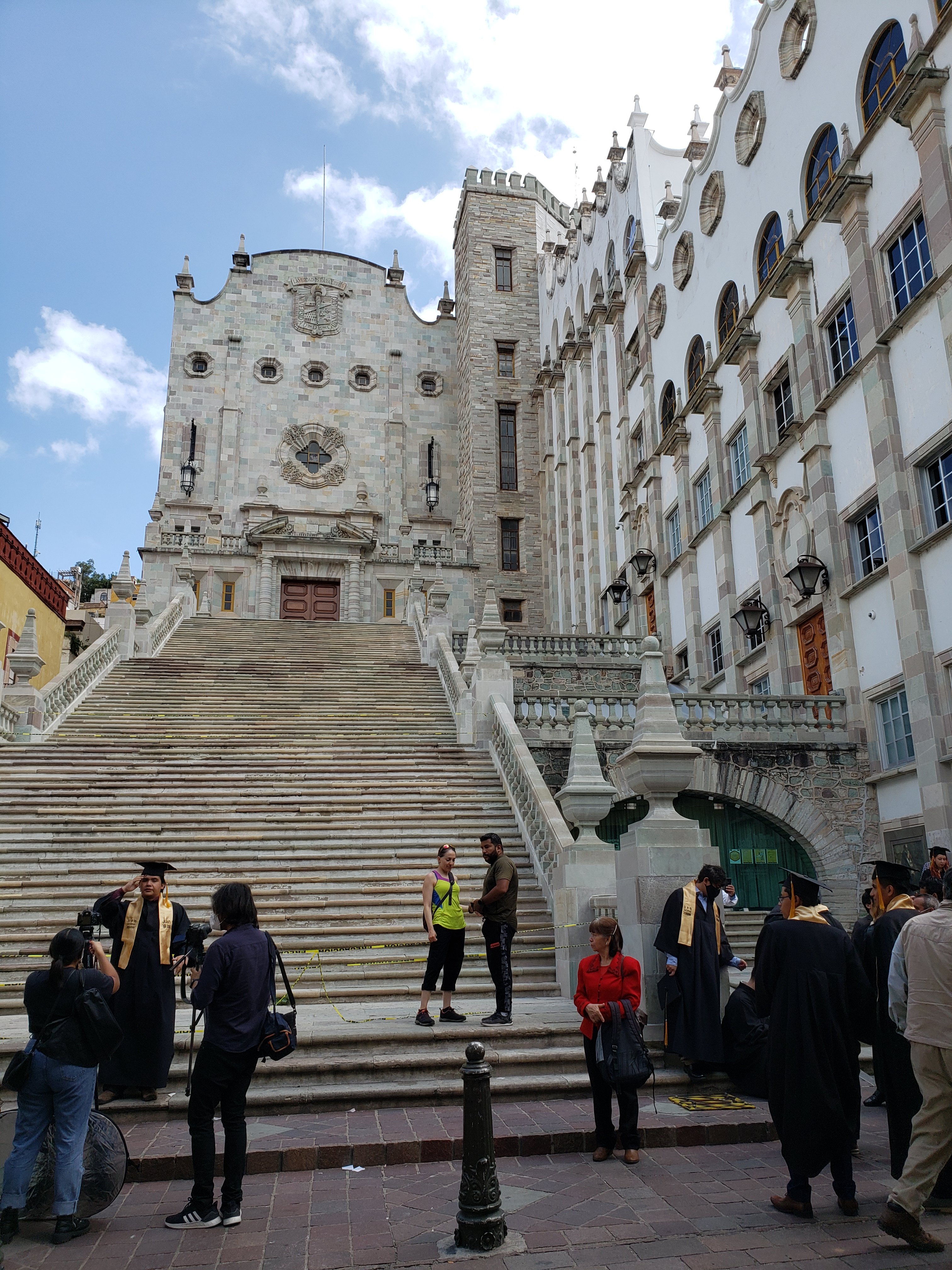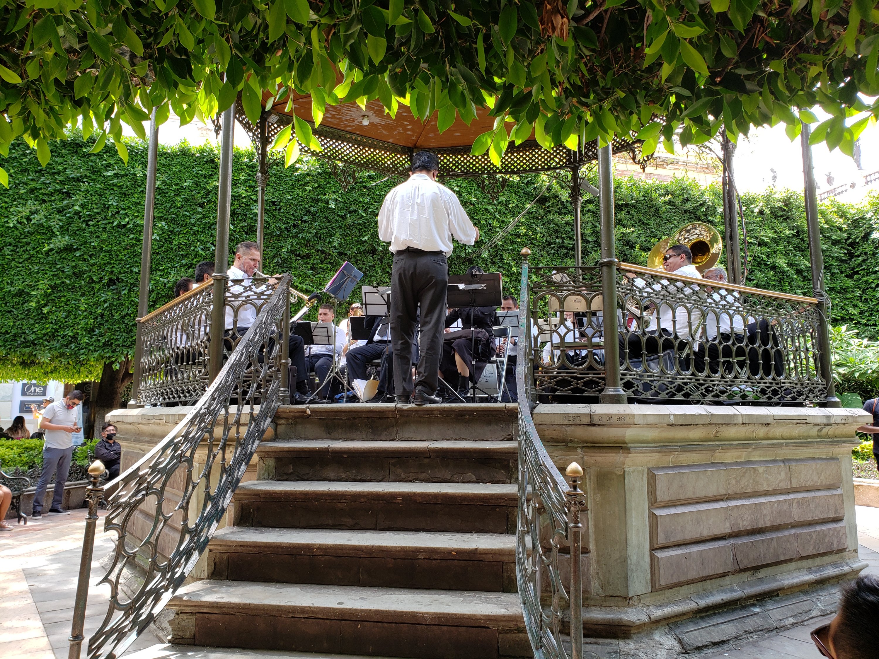 We did a walk from our hotel this morning and passed right by the university and found graduates taking their pictures! Then on to the jardin and caught the local community band playing in the bandstand! We did the tour of the theater then a quick tapas and enchiladas lunch