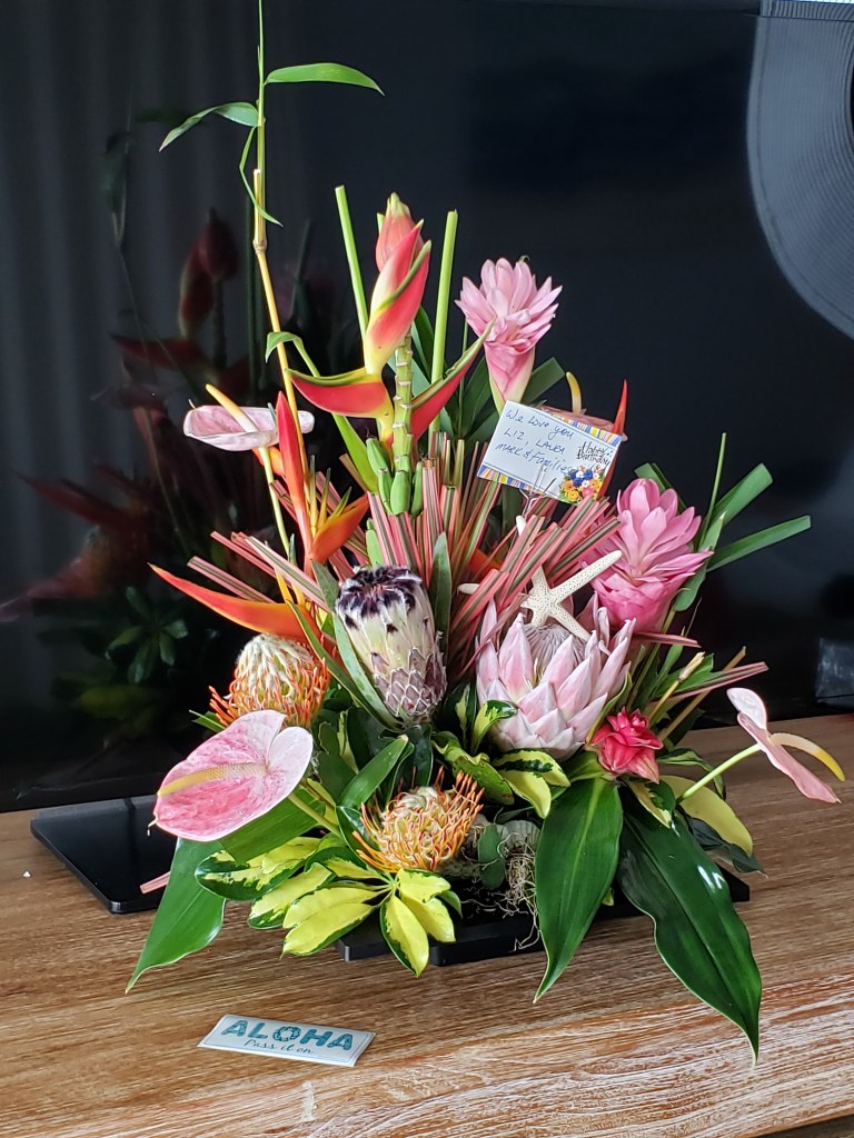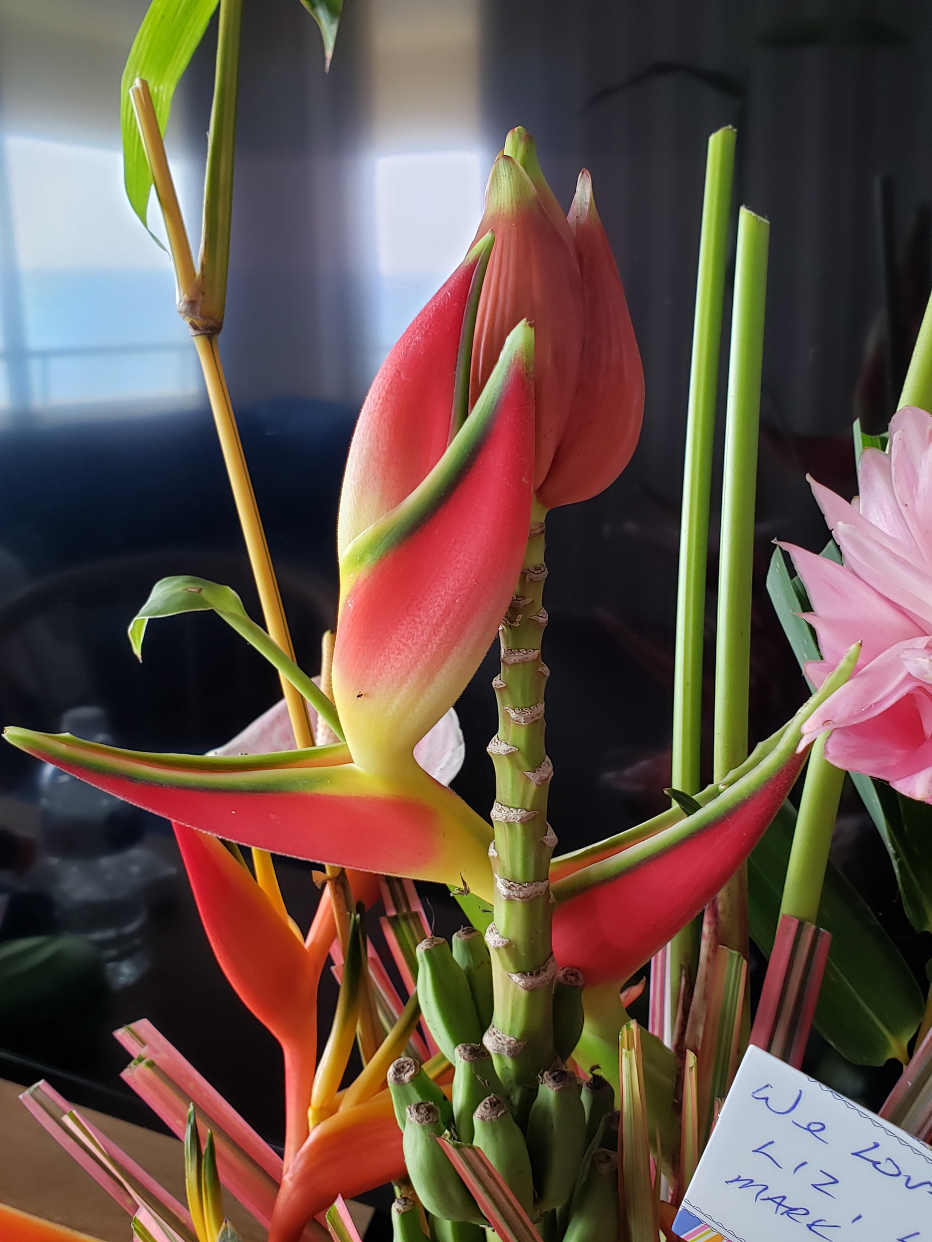 The kids all sent me this gorgeous tropical bouquet! It will really brighten our room! Thank you, Liz, Laura, Mark, and all the grand and great grand kids!